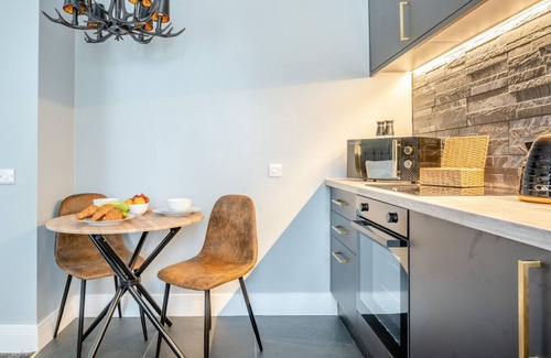 Step inside the shared entrance of this traditional cottage and climb the stairs to discover your charming apartment. You’ll be greeted by a beautifully styled, studio-type apartment with an open-plan bedroom/lounge/kitchen/dining space. Adorned in soft shades of grey and highlighted with stone features, the space exudes an air of refined comfort. The sleek kitchen, where bold tones and smooth finishes inspire you to prepare a superb dinner for your special someone. Share a romantic meal in the intimate dining area before you head to the lounge area with a glass of wine to snuggle up in front of the Smart TV. At the end of the day, retreat to the king size bed in the sleeping area, and when you wake up, kick off your day with a revitalizing soak in the modern shower room next to the living space.