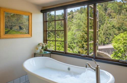 Features river, mountain or garden views in all rooms. The outdoor pool and spa is a short walk to our sister property, the KOA. The bar and restaurant is onsite. Bathrobes and toiletries are provided in each room. Free Wi-Fi is included. Private balconies are featured in most of the terrace rooms and our Queen Balcony room. The rest of our rooms are in the historic part of the building, and most of them do not have television. All Founder's Suites and all Terrace rooms have TV. Our hotel is pet-friendly. Pet-friendly rooms are the Terrace Petite, one Terrace Queen, and three of the Terrace Kings. Please inform the hotel you will be bringing a pet so we can assign a pet-friendly unit. All other rooms at the hotel are not pet-friendly. Daily maid service is provided upon request. Free bicycle rental is also available to guests of the Inn. Avenue of the Giants is 26 minutes’ drive away and showcases a scenic Redwoods. Benbow Valley RV Resort & Golf is 10 minutes’ walk away. Benbow River is 5 minutes’ walk away from Benbow Historic Inn.