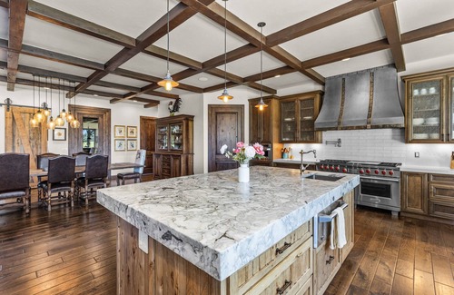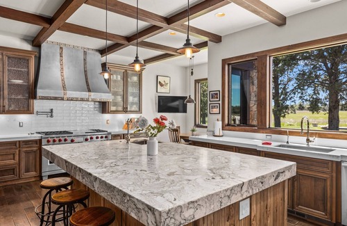 Spend hours relaxing in the great room by the masterful woodburning fireplace, or step just outside to the gas fire pit overlooking the property’s private freshwater pond. The primary suite is your own oasis complete with a cozy ensuite sauna and mountain views directly from the king-size bed. When it's time to eat, cook your favorite meal in the gourmet kitchen complete with commercial-grade Wolf/SubZero appliances, or enjoy the convenience of being just minutes from local favorites such as Tumalo Feed Steakhouse, Pisano’s Woodfired Pizza, and The Bite food carts, and more.