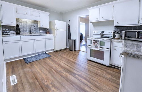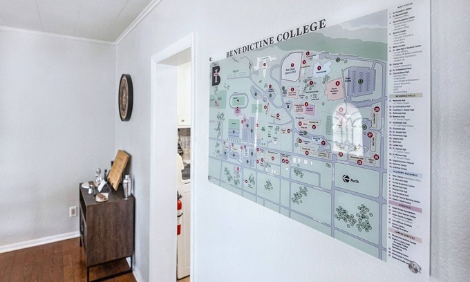 Welcome! Our cozy, Benedictine College-themed 2BR/1BA home, is perfect for short stays. It’s just right for visitors to the college or our charming town. While the floors and kitchen may not be perfect (no granite or stainless steel here), you’ll love the fresh, new furnishings and Benedictine decor. Our well-equipped kitchen has everything you need, and we offer an affordable stay for those who don’t need luxury but value comfort and convenience. A great choice for budget-conscious travelers! Escape to this fully remodeled 2-bedroom home, with its imperfections in the floor and slightly dated appliances the rest is 100% new and all 100% working perfectly. If not we would replace it with the most up to date immediately. Enjoy a fully stocked kitchen, a beautiful shower bath combo, and well appointed queen and king bedroom for a peaceful night's sleep. Relax in the cozy dining area with cozy table and mixology area (just bring your mixes) unwind in the spacious living room with new comfy sofa and second love seat. Step outside to a front porch with a charming set of outdoor chairs retreat to the rear yard for Bocci, surrounded by century-old trees offering shade and serenity. Perfect for a relaxing getaway, visiting Benedictine College or exploring the nearby attractions. Welcome to your Airbnb retreat! As our guest, you'll have exclusive access to the entire house, ensuring privacy and comfort throughout your stay. Enjoy seamless connectivity with complimentary WiFi and full access to utilities, providing everything you need for a convenient experience. For your convenience, self-check-in is available using electronic access, allowing you to arrive and settle in at your own pace. No need to coordinate key exchanges—we've simplified the process so you can start enjoying your stay right away. Relax and make yourself at home in this thoughtfully equipped space, designed to enhance your stay in every way possible. 📞 Need assistance faster than a cheetah on Red Bull? Hit us up anytime! Call, text, email, or slide into our Airbnb app like it's a slip 'n slide! Jonathan's usually busy saving lives in hospitals nationwide, so his clan (read: family) might jump in to rescue your bacon. We promise, we're almost as fun as a barrel of monkeys and twice as helpful. So go ahead, reach out—we're standing by like superheroes in disguise (cape not included). 🦸♂️✨ This home is designed all around the Benedictine College theme and we tried not to be ultra religious in nature however with the college being Catholic there are a few Catholic items. We did try to limit this to College Theme more than Christian or Catholic. This may be good for some and bad for some and hopefully we hit this just right. We have taken care to let you know that the floor are NOT PERFECT. No the house is not falling down, and yes the foundation was fixed however this old house had to have some big time fixes :). We have had many many people work to make this imperfectly perfect house a good lil airbnb and hope that it will be a quality place for your discerning $.