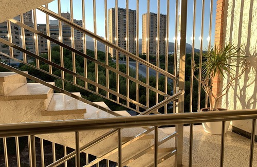 Luxury renovated flat in the attractive small building Casa Hispania from the sixties. Second line beach. In La Cala-Benidorm, the residential part of the town, on the quiet Poniente beach. (Levante is the party part of town with only hotels) We are also happy to rent our holiday flat in Spain to lovers of sun and sea. Only 100 metres from the beach and boulevard. Enjoy the view from the 8 metre balcony on the seventh floor. Good lift. Private car park. Suitable for 2 adults, non-smoking, no pets.