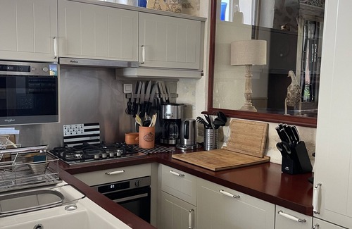 Entrance with cloakroom, fitted kitchen with dishwasher, washing machine, microwave, oven pyrolysis, fridge freezer, wood stove.