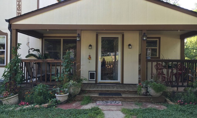 Our home is quite quaint inside and out! You will enjoy up to Three private bedrooms(1 king bed, 1 full, 1 twin). Majority of our home is one level where all three of the bedrooms are located. If you need a washer and dryer they are located down stairs. In addition you are welcome to use our porches (three of them), living room, and movie theater. In our home you are surrounded by plants and art (there is a gas fireplace if it gets a little chilly at night and another one in the master bedroom), or read a book on the screened-in patio. Also, watch television, video games, you welcome to use the kitchen and feel to use anything you may need.