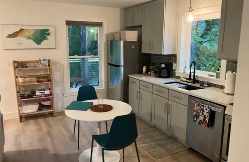 A brand new mountain oasis just seconds from the Blue Ridge parkway. We're in the heart of Pisgah National Forest and the Blue Ridge Mountains, with walking access to miles of hiking/biking trails, and convenient to downtown Asheville, Blue Ridge Parkway, NC Arboretum, and Biltmore Park. Relax and enjoy the beautiful canopy views and sounds from our treetop deck. Head to the woods, or head to town for Asheville’s vibrant food/music scene, The Birds Nest will make it an easy and fun experience!