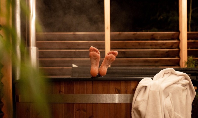 - 1 private covered terrace with wood-fired bath and garden furniture.