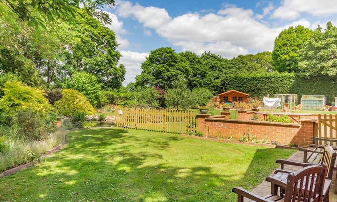 Amenities: Electric storage heaters with electric fire. Electric oven and hob, microwave, fridge/freezer, washing machine, dishwasher, TV with Freeview, DVD, CD, WiFi, selection of books, games and DVDs. Fuel and power inc. in rent. Bed linen and towels inc. in rent. Off road parking for 2 cars. Secure bike storage. Lawned garden with patio, low fenced pond, furniture and BBQ. Two well-behaved dogs welcome. Sorry, no smoking. Shop and pub 2 mins walk. Note: There's a pond in the garden, which has a low electric fence. Note: No children, including infants.