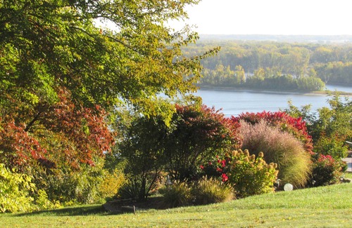 We are located at 500 North Street. The Berry Patch is on the second floor and has a western, spacious lawn view. However, there is an outdoor deck with a spectacular view of the Mississippi River and our double-lot, flower garden. This room provides a Posturpedic Full-sized bed. The bathroom with tub/shower is attached and private. (The hot tub is only available to Penthouse guests on the third floor.)