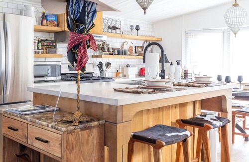 - Chair seating at dining table + island seating for up to 6 people