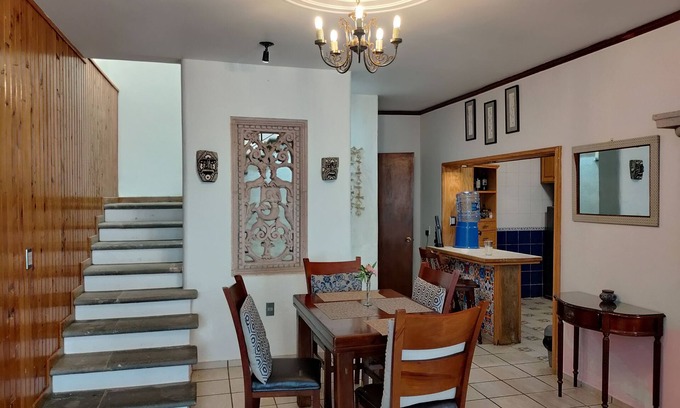 Your home away from home in Morelia, Mexico with 2 bedrooms. This fantastic, spacious and well-located condo offers a cozy space with 1 queen bed, 1 full bed, and 1 twin bed. Enjoy the convenience of amenities like WiFi, a hair dryer, and a washing machine. With 2 bathrooms equipped with a hair dryer, our place is perfect for guests looking for a nice and comfortable stay. Our place is equipped for both short and medium term stays to make your holiday one to remember.