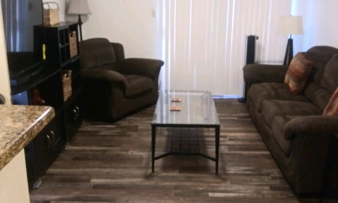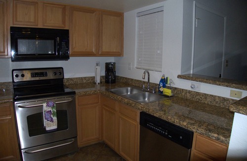 This is a newly decorated, nice, two bedroom, one and one-quarter bathroom condo in a quiet area of Glendale, Arizona, just outside of Phoenix. This unit is a few, very short minutes to all the sports venues. It is nicely furnished with a fully functional kitchen. The kitchen features granite counter tops, new small appliances, new dishes, pots and pans. The unit sleeps 6. The bedrooms have queen size beds and the living room has a pull out couch. The master bedroom also has a flat screen television and walk-in closet. There are two balconies; one off the living room and the other off the master bedroom. Both face the Phoenix Greenbelt, which make this unit very quiet and desirable. It is equipped with high speed internet. There are 2 flat screen televisions and a Blue Ray DVD player. You can walk to the park, shopping, urgent care, a major hospital, and grocery shopping. You can also walk to Starbucks, Einstein bagels, and many other shopping venues. This is a nice, upper middle class condo. It is not a dive nor is it the Ritz Carlton. It would compare to an Embassy Suites in quality, but with all the amenities of home. It is very clean with very comfortable furniture. Maid service is available for $80 per visit. 30 Day minimum stay due to HOA rules.