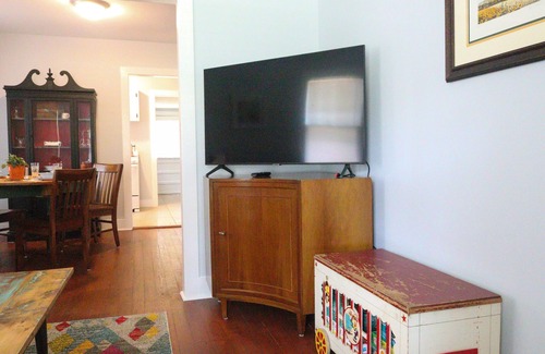 Tangerine Dreams is a cozy bungalow located in a popular residential neighborhood near downtown Huntsville. It is close to everything- shopping, schools, work, and recreation. This is a brand new remodel- new appliances, paint, furniture and floors- all designed with your comfort and convenience in mind. There is a full sized washer and dryer, new stove, oven and refrigerator. The kitchen is fully supplied. Dining room and living room are inviting and comfortable.
