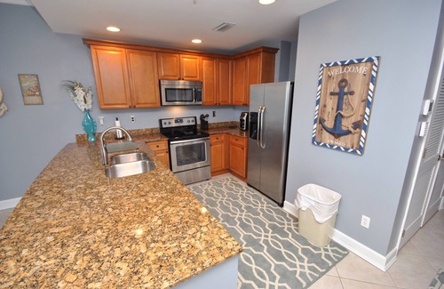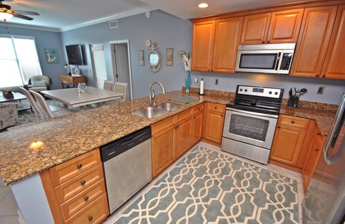 This Condo / Resort has it all. This is a 2 BR 2 BA professionally decorated Condo with all stainless steel appliances, high end furniture in the living areas, bedrooms and on the screened in balcony. The master BR has a king bed with a 55" smart TV. The second bedroom has a queen bed and a 55" smart TV. The living room has a 65" smart TV, all three are brand new. The kitchen and master bath have granite countertops and tile showers. The unit is appx 1300 sq ft