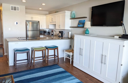 Oceanfront Unobstructed View. Oversized large 16' Slider door, opens to a large deck. LINENS PROVIDED! Fully Renovated, Modern New Kitchen with Stainless Steel appliances, New Bath, New KING Bed in Master, New Queen Murphy Bed, and a Daybed. Everything is New!!! The most amazing View on the Island. Drink your coffee, Eat your Dinner or a glass of wine while Watching the Dolphins, Pelicans and Beach goers from the Large Deck, Fresh Linens, Blankets, quilts, covers and towels provided and All Surfaces, handles, knobs, anything touched cleaned before each stay. NOTE: The building / Unit will be accessed for bug spraying on March 10th, June 9th, July 14th, August 11th, September 8th and December 8th. If your stay is during any of these Dates you must let them into the Unit. This is a Mandatory spray of all units which keeps the bugs away. We want to ensure everyone has a pleasant Stay without any unwanted unexpected Visitors. The spray is non Harmful and safe for Children. It will take less than 3 minutes and they will only be spraying near the perimeter and doors. We appreciate your cooperation.