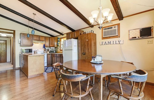 This 3-bedroom, 2-bath home sleeps 8 (including bunk space), with a fully stocked kitchen, open-concept living and dining area, WiFi, washer/dryer, wood stove, and A/C units in the living room and mini split in lower level and a window unit in all bedrooms. Two smart TVs are available for streaming with your accounts (no cable).