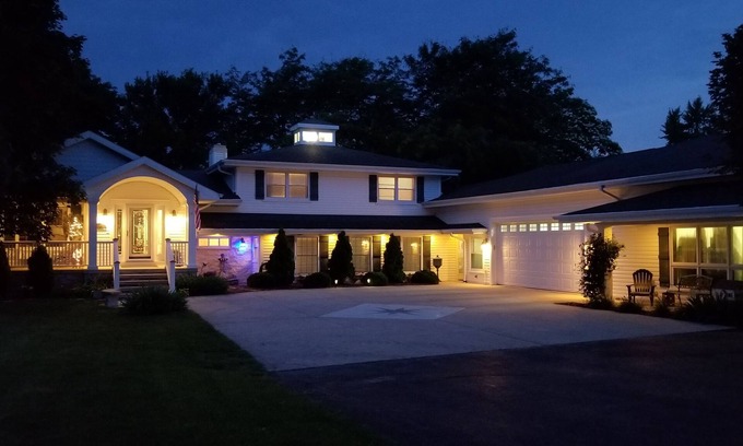 The breath-taking views begin the moment you walk through the front door! Our home is located on a quiet cove along the Bay, just a couple miles away from the University of Wisconsin, Green Bay (UWGB) campus. The Bay can be as smooth as glass or rolling with waves. Each day delivers a new view and experience!