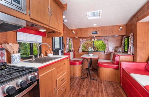 Stay close to the ones that you love the most. Bumble Bee is a RV trailer available for short term rentals for a nurse, work crew, electricians, handymen. It has 1 Bedroom and 1 Bathroom. It has a unique design.