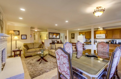 Accommodation: This gorgeous single-level home features an open and airy floor plan, beautifully designed spaces with upscale accommodations. Two large bedrooms, and the Primary suite features French doors that provide access to the lush backyard. This ideal property is ideal for groups of up to 6 people or families with children. Additionally, it features a sofa bed in the living room and a sectional sofa in the family room.