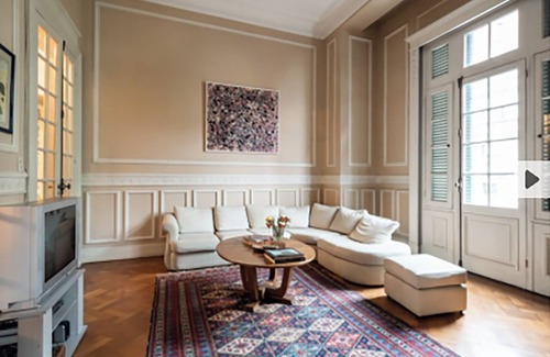 Huge French style spacious apartment occupying a complete floor, with tall ceilings, alabaster chandeliers, French windows through out, completely remodeled modern kitchen, dishwasher, gas range, washer/dryer, two complete bathrooms, two bedrooms - one with queen the other with two twins. Separate office, living room, dance space, art loft. Across the street from two metro lines. Fully furnished, TV, cable, and ultra high speed WiFi. Minimum stay two weeks, Very safe and secure, porter present, elevator, balconies, light-filled, lovely furnishings. Close to shopping, milongas, art and cultural activities, great restaurants.