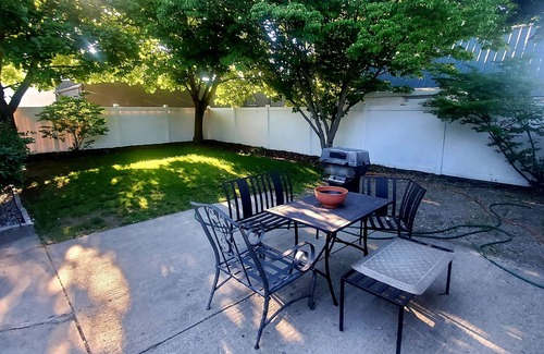 - Inviting Outdoor Oasis: Enjoy a fully fenced backyard with mature trees and a patio perfect for post-ceremony gatherings or relaxation during your wedding weekend.