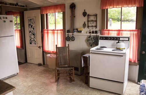 Besides the appliances already mentioned, it is fully stocked with pots, pans, dishes and utensils. Every-day dinnerware is on the kitchen shelves; finer dinnerware is in the dining room cabinet. Whatever is in the pantry cupboard is yours to use.