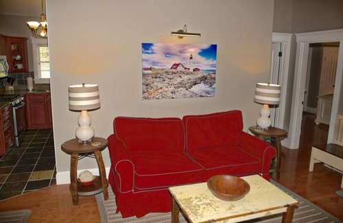 The Maine Hangout is a 2 bedroom cottage with each having its own private bathroom. The cottage has a spectacular view overlooking the Sheepscot River and includes all the amenities of home. With a picturesque view of the Wiscasset village, it is located at the Sheepscot Harbour Village Resort. Sheepscot Harbour is an elegant community of new waterfront and water view cottages. The Maine Hangout comes with a fully equipped kitchen, hardwood floors, flat screen TVs with cable in each room, washer & dryer and wifi for your enjoyment and comfort. From the screened porch with 4 comfortable rocking chair, whether it's your morning coffee or an afternoon cocktail, the scenic view and beautiful Maine sunsets are a stunning addition to your Maine experience.