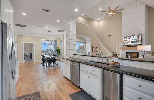 Welcome to our exquisite lakeside retreat Overlook! Perched majestically on a cliff overlooking the serene waters of Possum Kingdom Lake, this luxurious home promises an unforgettable escape with breathtaking views and upscale amenities. Boasting 4 bedrooms and 4 bathrooms, accommodating up to 12 guests, it's the ideal setting for family gatherings or memorable reunions with friends.