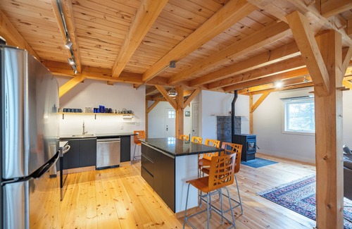 Cozy mountain timber frame chalet situated in a quiet, private location in Bethel, ME. Enjoy mountain views Sunday River ski trails to the west. Property highlights include spacious open floor plan, cathedral ceilings, and a fireplace pellet stove. Walk across the road to access Carter’s XC Ski Resort for cross-country skiing and snowshoeing trails. 5 min. drive to Bethel Village and the Inland Woods and Trails XC ski and mountain biking trail network, and 15 minutes to Sunday River Ski Resort.