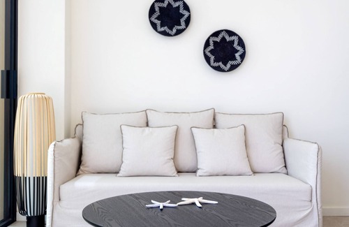 Brand new Beta villa offers a panoramic view of the private beach . A welcoming terrace with comfortable built sofas and dining area next to BBQ, will urge you to enjoy your time away from the stressed that you left back at home. The private pool with sunbeds and the garden, overlooking the endless sea view is the ideal spot for anyone in need of privacy . The villa also has an open plan living area, TV corner, dining area connecting with spacious open plan fully equipped kitchen.