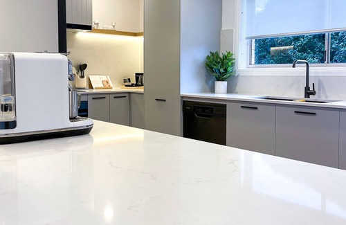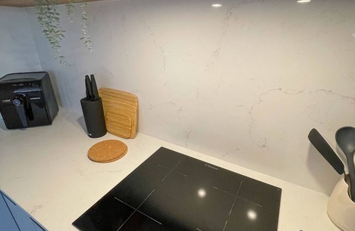 - kitchen with stone benchtops, induction cooktop, crockery, glassware, Nutribullet, Air Fryer, Toaster, Microwave, Dishwasher, Nespresso coffee machine, quality appliances