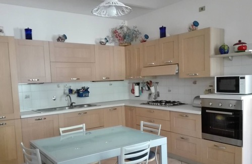 The apartment consists of kitchen, two double bedrooms, large living room and bathroom, for a total area of about 100 square meters. It can accommodate up to 6 people, 4 in the two double bedrooms and 2 in the living room (on 1 sofa bed). The kitchen is fully equipped; the bathroom has a bath, shower, sink, bidet and toilet; the WI-FI internet connection is free; outside barbecue, table and garden chairs and enough space to park two cars. In addition it is possible to park a car in a garage where there is a toilet with a shower.