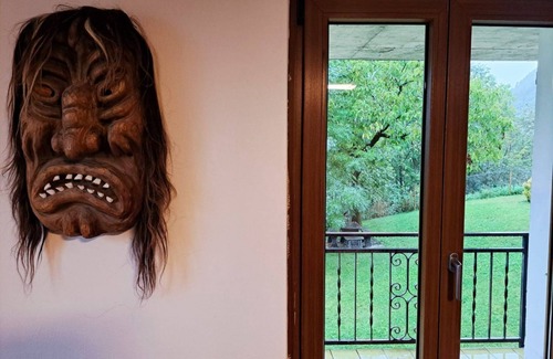 This cozy mountain accommodation combines the charm of tradition with modern comfort. Original elements such as the large stone fireplace, wood-burning stove, and ceramic floors tell stories of the past and create a warm and homely atmosphere. The bright living room, with its comfortable double sofa bed and large wooden table, is perfect for relaxing and sharing special moments (Please note: the sofa bed is not prepared, we think it is proper to use the sofa during non-sleeping hours. You will find sheets, pillows and blankets in the closet/shelf most adjacent to the sofa). The French door opens onto a spacious covered balcony overlooking the garden and forest, offering enchanting views throughout the day. The separate and fully equipped kitchen provides everything you need to cook like at home. It also has access to the outdoor space, ideal for enjoying the sun and fresh mountain air. The sleeping area includes one double bedroom and one single, both with wooden floors and windows framing the alpine landscape. The bathroom, compact yet functional, is equipped with a practical shower.