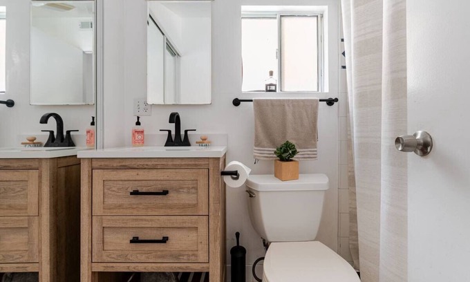 This beautiful private Beverly Hills residence is only 10 mins to Rodeo Drive, nestled in the peaceful canyon. This home features 2 spacious and airy bedrooms with plush king beds, a cozy living room with fireplace, and a fully stocked kitchen with coffee machine. Enjoy the private yard with grill, string lights, and patio seating for morning coffee or evening dinners. Includes full washer/dryer and ample parking—the perfect mix of canyon serenity and Beverly Hills luxury.