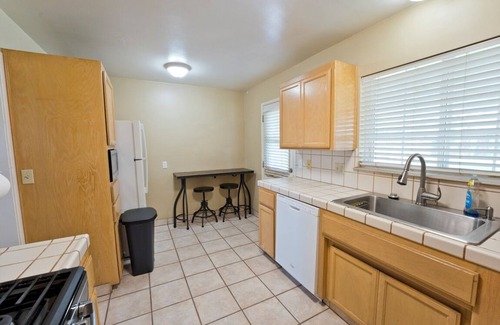 Escape to this tranquil retreat where the entire family can unwind together. Enjoy some plane watching from the front porch! This charming home comes fully equipped with everything you need for a comfortable stay, just five minutes from Bakersfield Meadows Field Airport.