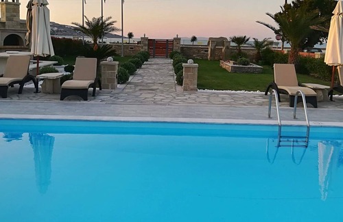 Our beachfront villa is located in Sitia and offers a beautifully landscaped garden, an outdoor swimming pool and a sun terrace overlooking the Cretan Sea. It features elegantly decorated accommodations with free Wi-Fi and a bathroom with a hydromassage shower cabin. The center of Sitia is 500m. away.