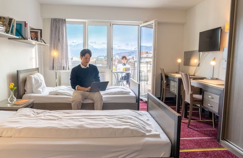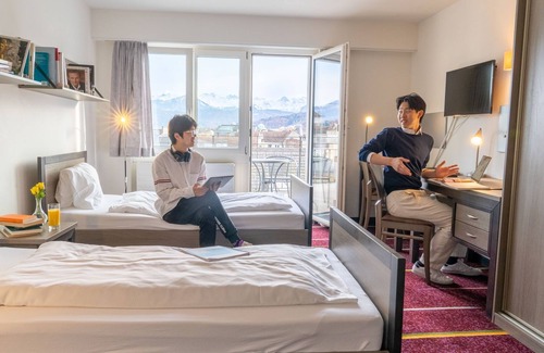 Comfortable, historical apartment block "BHMS Lakeside Campus", 5 storeys. In the centre, in a central, busy position, 200 m from the lake, on a main road. In the house: reception, WiFi, lift, central heating system, washing machine, tumble dryer (for shared use). Breakfast and half board on request (extra). Motor access to the house. Public car park at 200 m. Shop, grocery, supermarket, restaurant, bakery, café 100 m, pedestrian zone 100 m, bus stop "Löwenplatz" 100 m, railway station "Luzern" 800 m, outdoor swimming pool 2 km, indoor swimming pool 2 km. Nearby attractions: Löwendenkmal 200 m, Altstadt 200 m, Verkehrshaus 2 km. Well-known lakes can easily be reached: Vierwaldstättersee 200 m. Please note: main road close by. The photo is just an example. On weekends, brunch and evening buffet (extra) available on request.