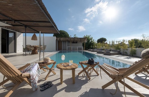 Bianco Boutique Villas are located in Peukos village, in a distance of a 2 minute walk from the idyllic Pefki beach. Each villa offers an amazing private swimming pool along with a tasteful decorating approach. Also, each one hosts up to 6 guests and presents you with a truly sophisticated option for a unique holiday experience and a memorable stay.
