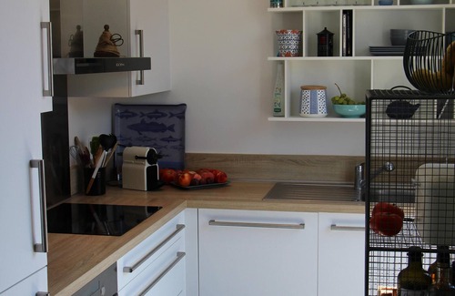 Includes fitted kitchen, bedroom with 160x200 bed, bathroom with walk-in shower, living room with dining area and sofa bed size 140x200. Adjustable 48 "TV screen, connected to an SFR fiber box, Apple TV box and Canon color printer-scanner compatible with AirPrint.