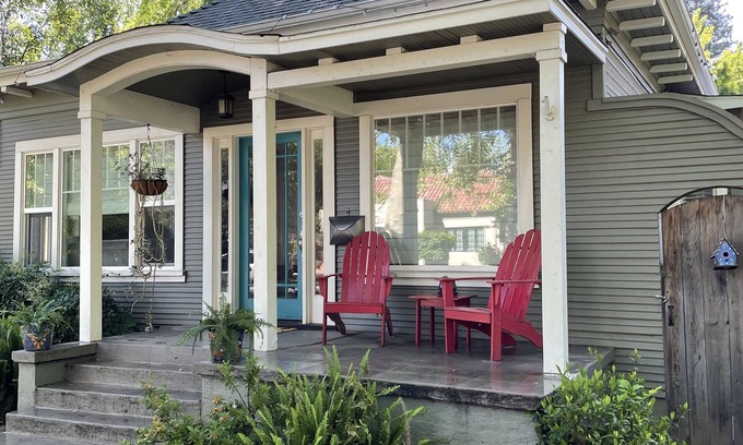 This house has an amazing location. Walk one block to Bidwell Park and Caper Acres or step out to the Farmer's Markets and Downtown restaurants. This immaculate house will impress you and make your Chico visit memorable as you relax in style. Enjoy the yard and quality furnishings. Coffee, tea, water and snacks are provided in your welcome basket. Sit on the porch with your favorite drink.