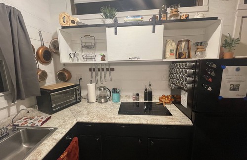 With roots in both Costa Rica and Chicago, we understand the desire to get away sometimes and seek out peace and quiet! Pura Vida, or the good life, is the Costa Rican way. We invite you to get away from the city in our comfortable and welcoming, open-concept tiny home, located an hour drive outside of San Diego in Mount Laguna. Enjoy the queen-sized lofted bed where you will wake up to the beautiful view of tall pine trees and the sound of birds calling and woodpeckers digging for breakfast! The futon can be folded down and is convenient for a third traveler or even families with a couple of children. (Additional Air mattress can be provided upon request). You will be able to make breakfast of your own in our full kitchen. We also like to share the “Pura Vida” with you by providing delicious and authentic Costa Rican coffee for your enjoyment. If you prefer, you can even follow the instructions we left you to brew using a traditional Costa Rican pour over style! You can indulge in your meals at our indoor breakfast bar, looking out our large windows, or you might prefer to eat outside on the deck inside of the private, fenced in area.