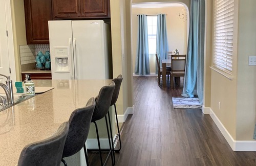 Newer home in a quiet established neighborhood, this house is perfect for families and groups. The house is located in central Folsom off a main thoroughfare, East Bidwell. Along East Bidwell you can find major shopping retailers, dining and entertainment. You will be very pleased with how close you are to nearly every major convenience store, generally within 5-10 minutes of retailers like Target, Costco, Walmart, 99 Ranch, a variety of drug stores, and gas stations. Also within 5-10 minutes are numerous fast food restaurants, casual dining options and excellent local mom and pop shops offering a wide variety of cuisines. Ask us for dining recommendations! You can find live theater shows and concerts playing every weekend at the Harris Center or take your kids to the nearby Folsom Aquatic Center. Stroll through charming Old Folsom with the family or pick up some new gear at the Folsom Outlet Shops or at the outdoor Palladio shopping mall. Catch a movie at one of 3 different local movie theaters, including the Palladio Luxe Theater where seats can fully recline while ordering food and beverages, including alcohol, delivered straight to your seat. Take advantage of Folsom's numerous trails for biking and hiking and catch the gorgeous sunset out at Folsom Lake. After a full day, come back to the Bidwell Beauty to unwind and relax in our yard equipped with new patio furniture, a firepit table and BBQ grill. You might even be able to pick some fruit off our fruit trees to snack on during your visiting (the fig and cherry trees are always popular)! If visiting areas outside Folsom, you'll find we are conveniently located between Tahoe, Reno, Napa Valley and Sacramento. There is plenty to do and see!