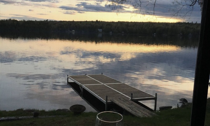Located in Abbot, this adorable cabin is a dream. Full viewing of the pond from the south to the north shore. See the sunrise on the opposite shore. Sunsets? Just Incredible. AND so many improvements in the last decade including new kitchen, bathroom, roof, siding, beds, mattresses, BR lighting, HD TV, WIFI, Woodstove, refrigerator, gas stoveLR furniture and more. The kitchen is usually stocked with staples. Plenty of wood for the fire pit, Lots of books, Sit on the glider and chill
