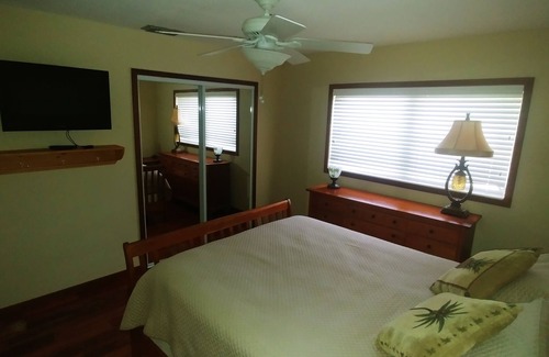 Please read description carefully. See property details. Private 1 bedroom, 1 bath guest house , large kitchenette and living area perfect for 2 guests. Queen size Deluxe Bed. Private Entrance , Private parking . Large screened Pool area and outside BBQ with GAS Grill for guest. The Pool area is the only SHARED AREA. The property is located a very short walk to Twin Rivers Park / inshore fishing piers.