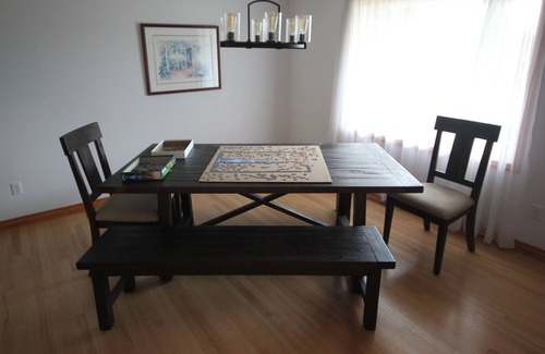 Our farm boasts an amazing view of Mt Hood and a lesser view of Mt Adams, 7 full well-appointed bedrooms, a great entertainment center with wet bar, and is a wonderful jumping off point for hiking and biking, the small town of Mt. Hood Parkdale, and the 'Fruit Loop'. You’ll love our place because of the outdoors space, the views, the location, and the recreation opportunities. Our big farm house is good for multiple couples, families (with kids), and groups. Per county regulations, we can only consider inquiries of 30 days or more.