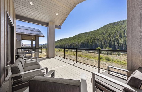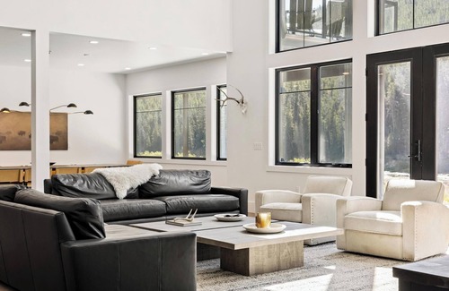 The house sleeps up to 16 and has six spacious bedrooms, each with its own en suite bathroom. Upstairs master suite has a private balcony that overlooks the river, perfect for morning coffee or sunset views you won’t forget. The kitchen is a dream to cook in, with high-end appliances and two dishwashers to make cleanup easy after a big group meal. There’s also a full gym, a game room, and a bar for relaxing or entertaining, plus a 37 foot balcony that looks out over the Big Hole River and the surrounding Pintler Mountains.