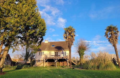 very quiet house, landscaped garden of 2500m2, south facing, beautiful view of the garden with palm trees, the forest and the village church of the 11th century beach overlooking the Mont Saint Michel.