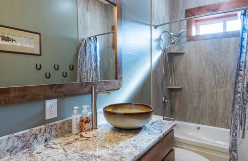 Nestled in the heart of Pinedale, this brand new 2021 construction 1400 square ft open concept space has the cowboy/western feel and detail that will keep you coming back! Boyd Skinner park is across the street. Keep your eyes peeled for moose & deer! It is a great base from which to enjoy our area and then come home to a heated floor and jetted tub, or relax by the fire or watch the 65" smart tv.