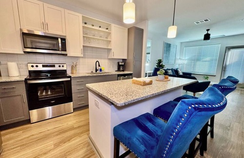 Luxury 1-bedroom apartment in Southside Jacksonville, close to the Saint Johns area and I95 Highway. Walking distance to Shopping and Restaurants and a short drive to downtown Jacksonville, historic St. Augustine, and the beautiful beaches of Ponte Vedra. The apartment features modern amenities, including a fully equipped kitchen, Wi-Fi, and a cozy living area with a smart TV. Perfect for day trips to explore, dining, and shopping close by. Ideal for travelers seeking comfort and adventure.