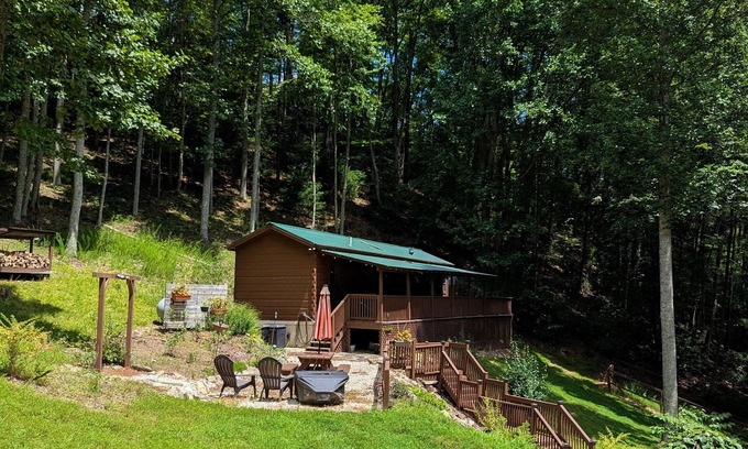 On 12 acres adjacent to Pisgah National forest, our cabin has the best of remote living while also being only 20 minutes drive to downtown Marshall, 30 minutes drive to the App Trail and Hot Springs and 40 minutes drive to downtown Asheville with all of its world class dining and brewery options. There is plenty to do close to the cabin; whitewater rafting, hiking, fishing and more. Relax in outdoor comfort on the covered porch & patio, roast marshmallows over the Solo stove fire pit, soak in the hot-tub, play a game, or stream your favorite show via the fiber internet.