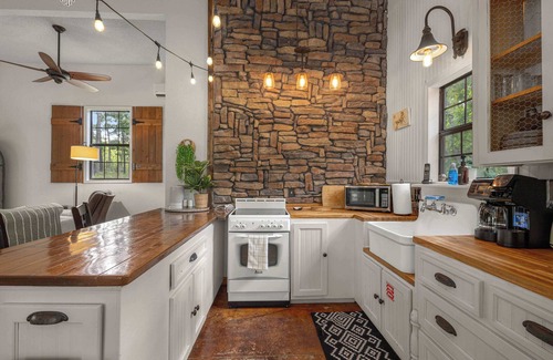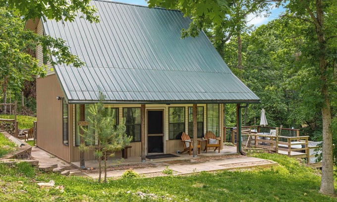 If it's time for a peaceful getaway in the Ozarks, & this charming cottage in the woods is for you. The Big Pine Holler is tucked away on 10.55 acres of untouched land surrounded by old-growth trees, wildlife, a small pond, and the sounds of nature! Located just 1-mile from Beaver Lake, 2-miles from War Eagle Cavern, and 3.5-miles from Hobbs State Park our cottage is great for those who desire a trip full of fishing, kayaking, hiking, and/or biking.
