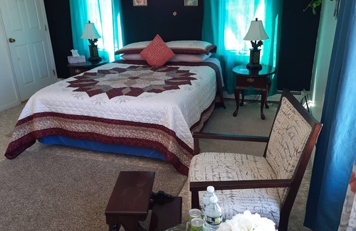 This room with a private bathroom is located on the second floor of the house. Has four windows: two to the sunrise (with a part of the ocean view) and two to the sunset! Black outs on the windows. The bathroom has two sinks. The room has a locker box. The beach and the ocean are right across of the house. A few amazing restaurants and an ice cream store are nearby.